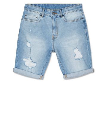 Pale Blue Ripped Denim Shorts | New Look pale blue denim shorts