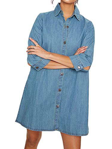 Denim Shirt Dress Women 3/4 Sleeve oversized denim button up