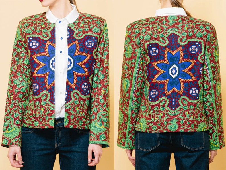 Vintage denim jacket, with African denim jacket with african print
