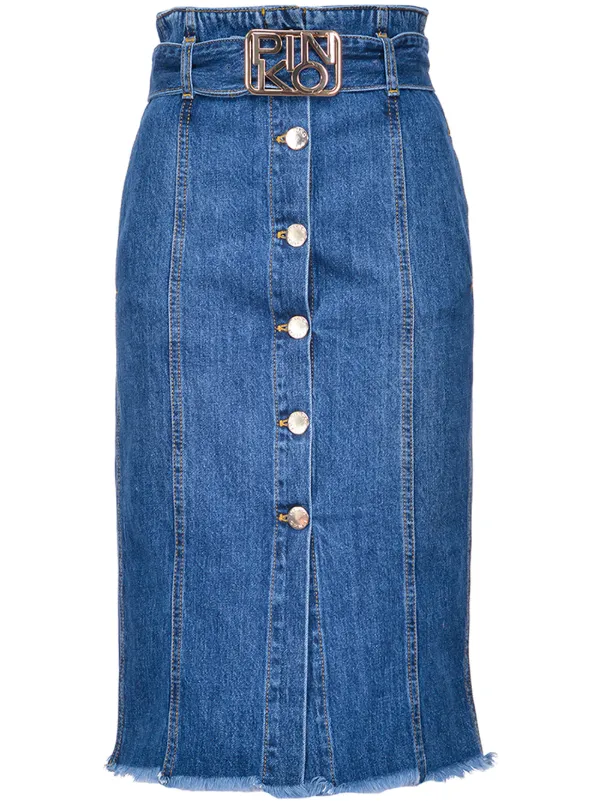 Pinko logo plaque button-up skirt blue button up skirt