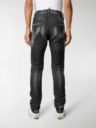 Slim fit used effect straight jeans dsquared2 straight jeans